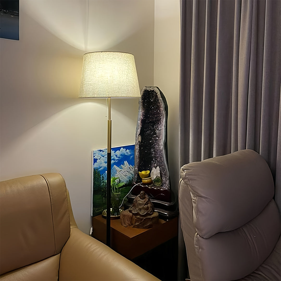 Three-color fabric shade options: This vintage wrought iron floor lamps white for purity/natural linen for simplicity/black for mystery, suitable for different home styles.