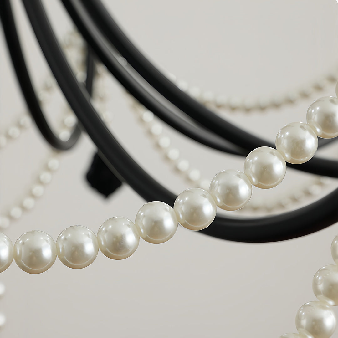 Pearl Chandelier Black Iron Artistic Crystal Ceiling Light