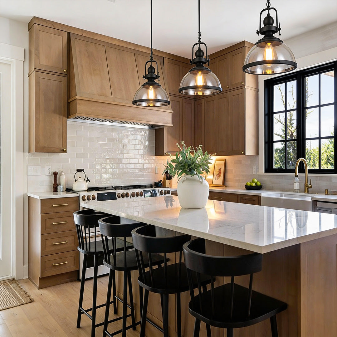 This clear glass pendant lighting features a bowl-shaped glass shade as its core, paired with a black iron frame, presenting a rugged yet refined industrial style. The glass shade has high light transmittance, and the light, after reflection, appears brighter and more warm. It is compatible with standard E27 LED bulbs and allows for easy replacement of the light source. Suitable for hanging in corridors, dining rooms, cafes, kitchen island countertops, living rooms, or bedrooms, it infuses spaces with a retro industrial vibe and a romantic play of light and shadow.