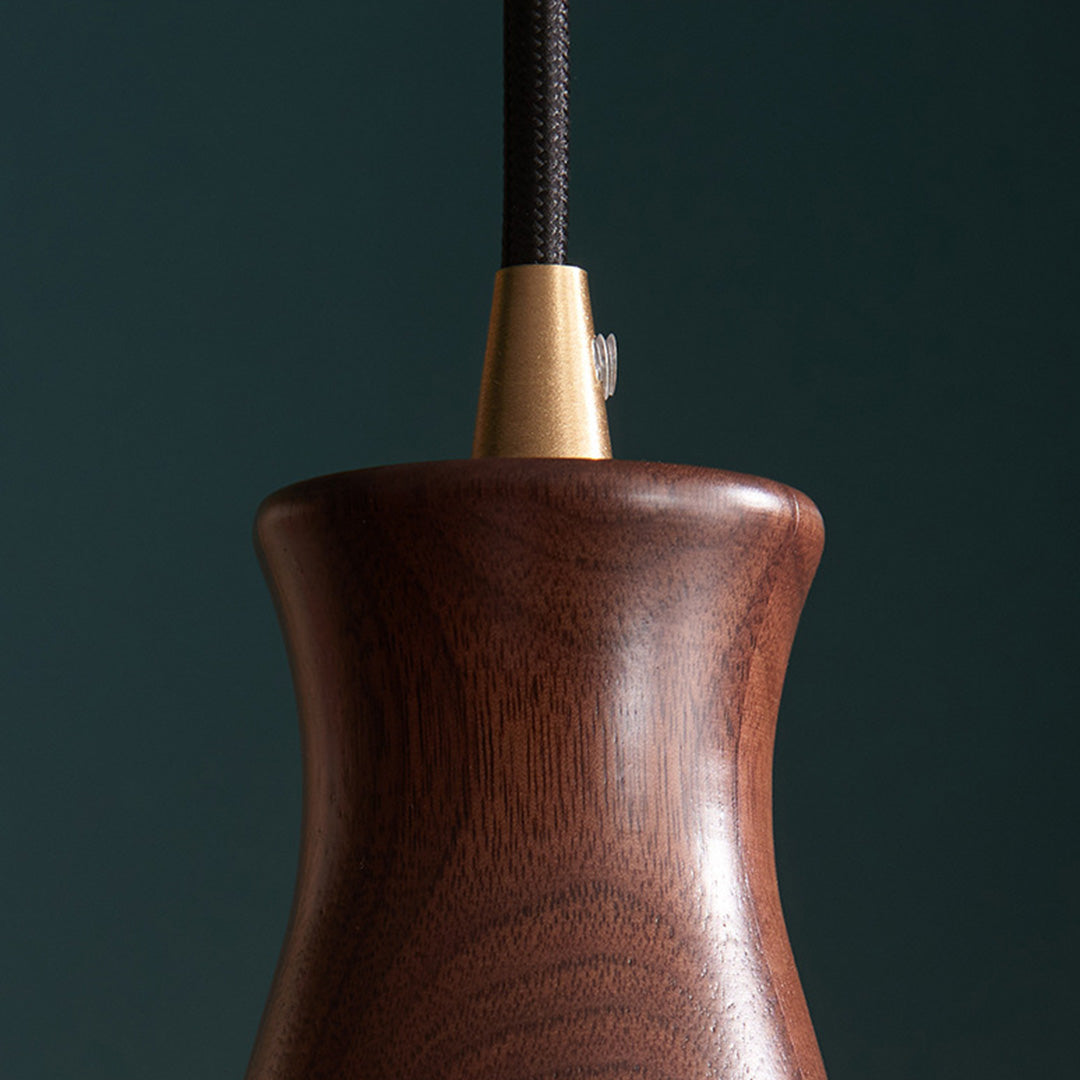 Brass Pendant Light Fixtures American Vintage Walnut Wood Cracked Glass Bedroom Light
