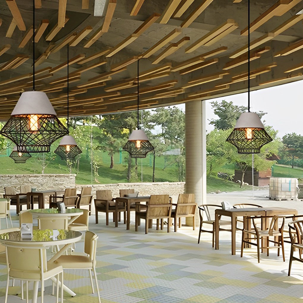 Cement Iron Cage Retro Industrial Pendant Light Kitchen Island Lighting