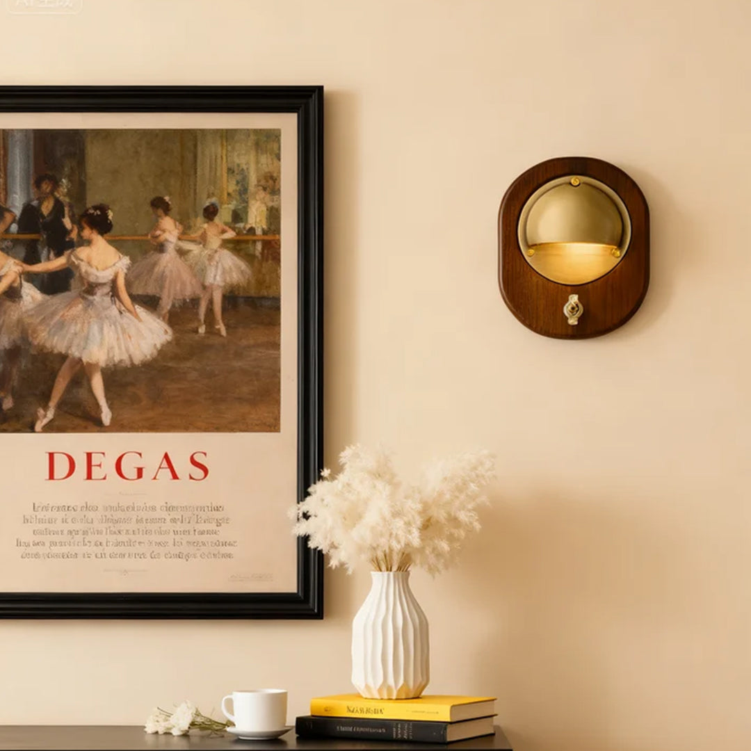 This unique wall lights combines brass and white wax wood materials, offering two color options: antique bronze and antique silver, as well as two designs: A and B. It features a 7W warm light source, integrating medieval art design language with natural materials to create a unique lighting solution for space.