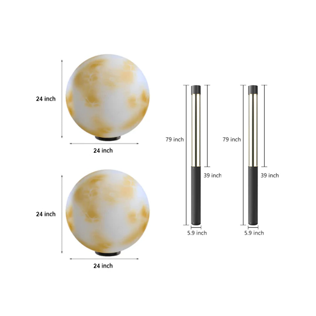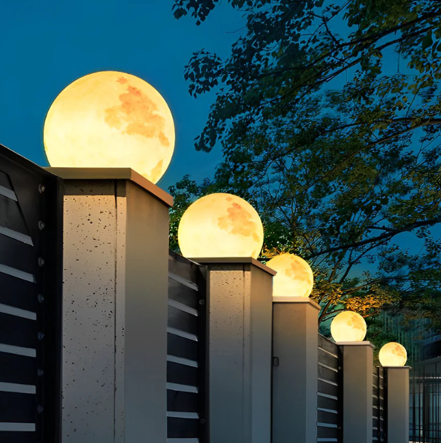 Moon-Shaped Outdoor Pier-Mount Pillar Light: A tall, commanding fixture featuring Moon design with dual vertical light strips. Perfect for marking entryways or standing guard along main driveways.