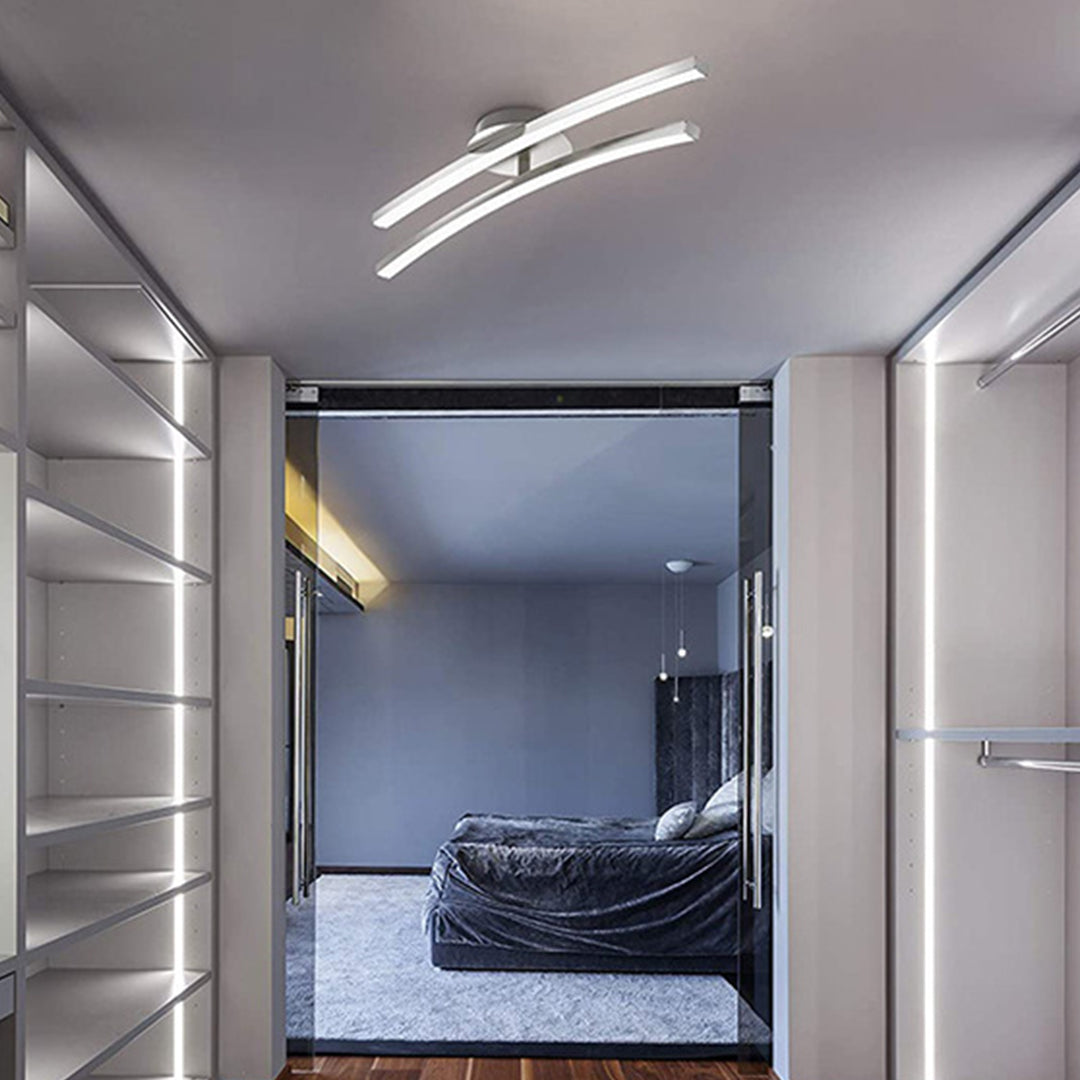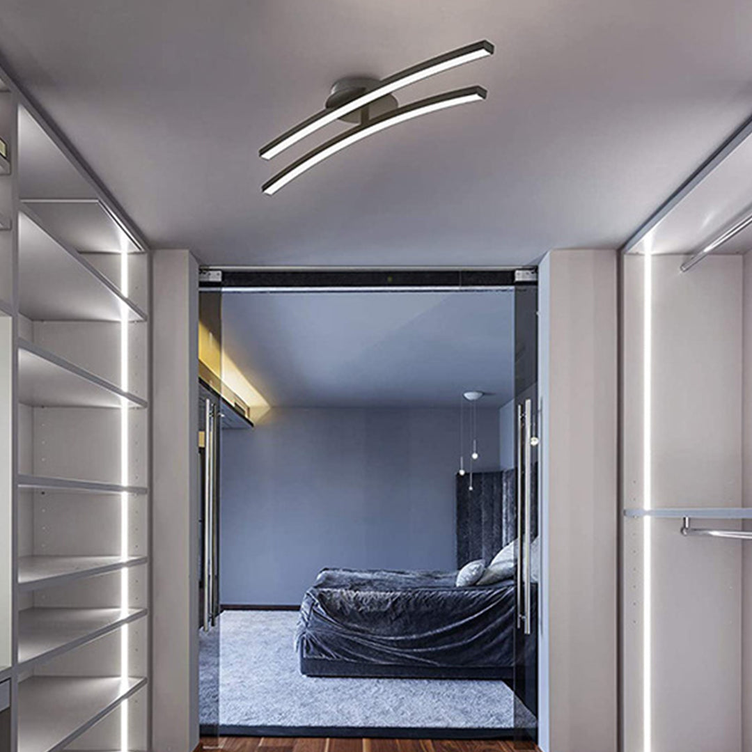 This contemporary semi flush mount lighting features aluminum strips paired with an acrylic panel, available in black and white options. The LED light source supports adjustable white, warm white, and tri-color modes. The 360° rotatable strip design offers flexible lighting solutions for bedrooms, hallways, and other spaces.