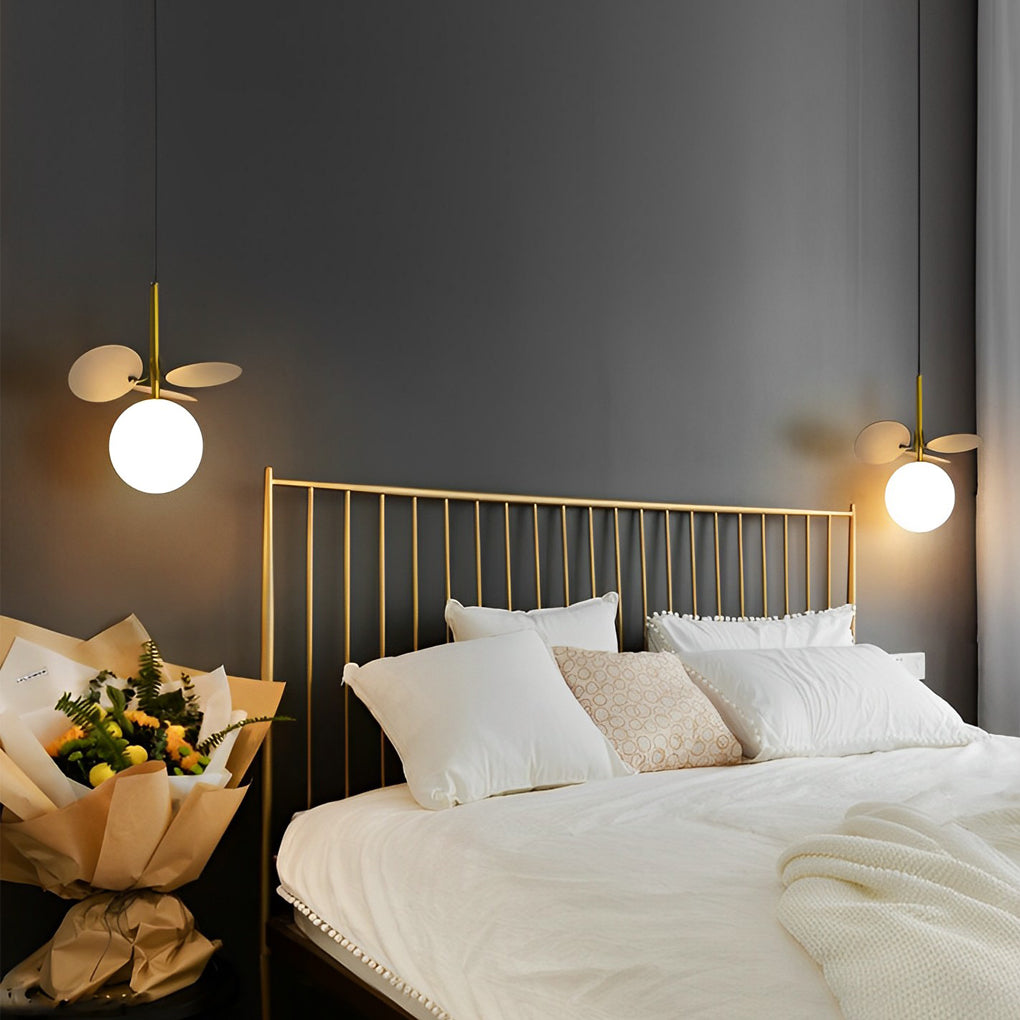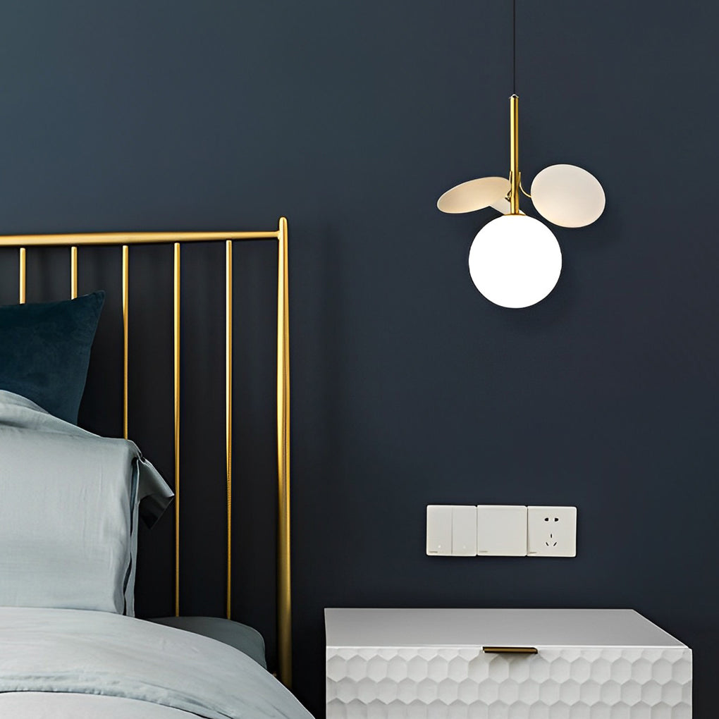 - This unique pendant lamp consists of a glass lampshade with three circular leaf decorations, through which light penetrates the glass shade, emitting a bright and wonderful light, creating a warm and inviting atmosphere. It's not just a lamp, it's an art decoration for your room.