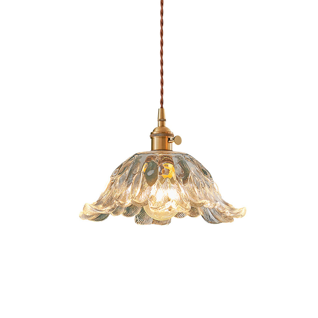 This flower pendant lighting features an H65 brass lamp head paired with high-transparency floral glass shade, available in small, medium, and large sizes, E27 screw base light source, and a 2-meter fixed hanging cord design, creating an elegant and refined lighting solution for dining areas, bars, and other spaces.