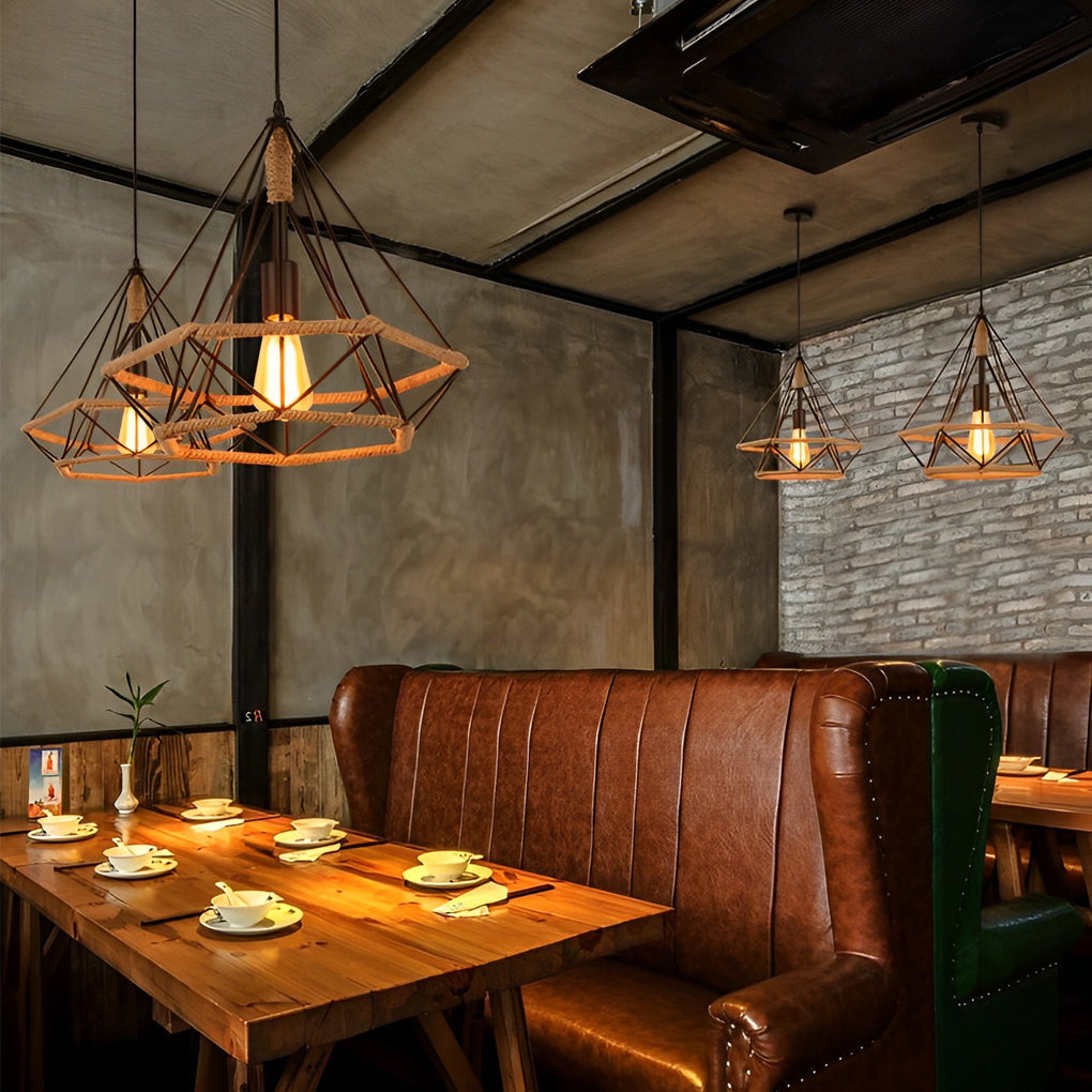Geometric Creative Iron Rope Lantern Shape Black Rustic Chandelier Pendant Lights