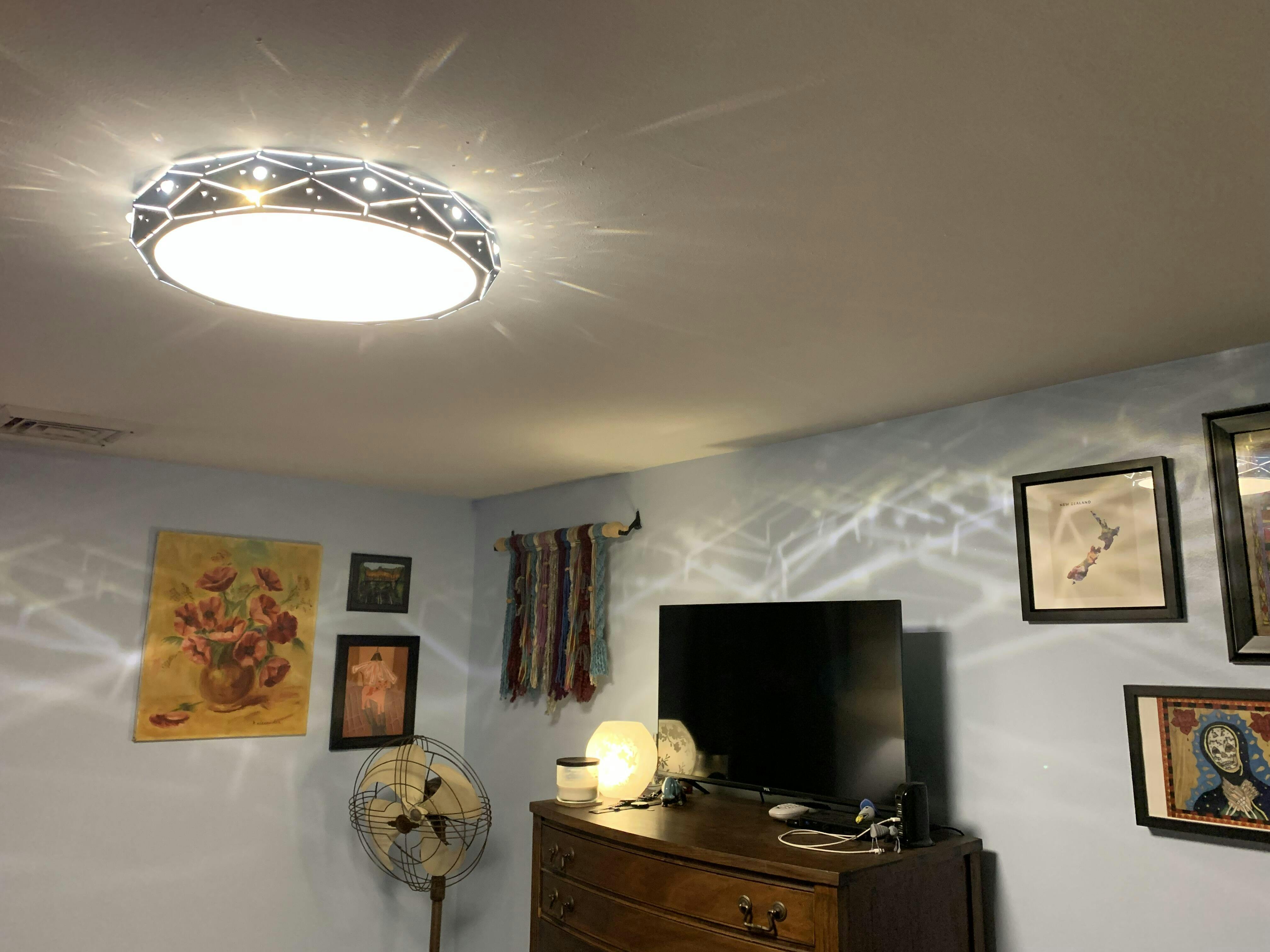 - This ceiling light of ours uses LED light source, the light is even and does not flicker, and protect the eyes from the harsh light.