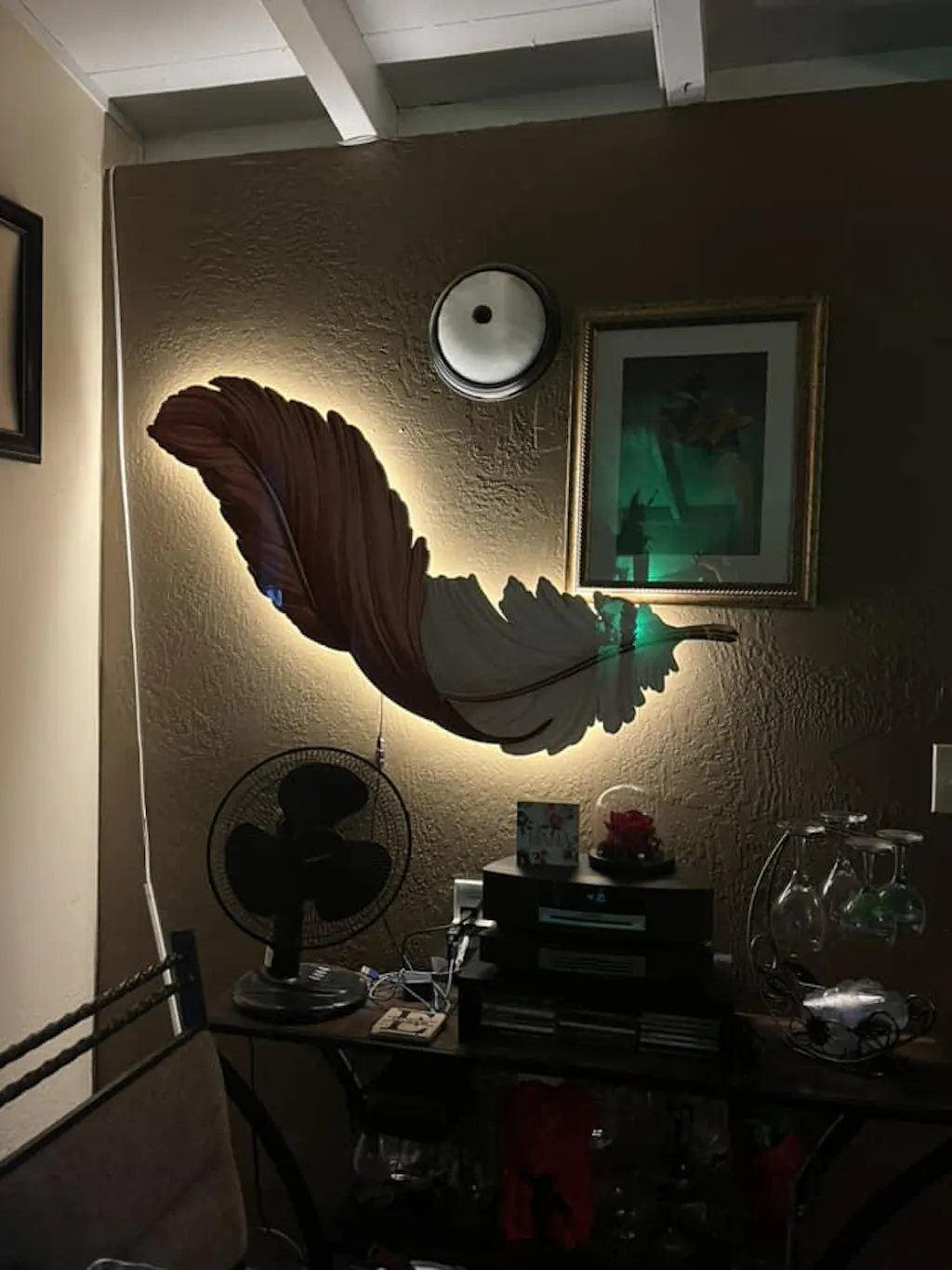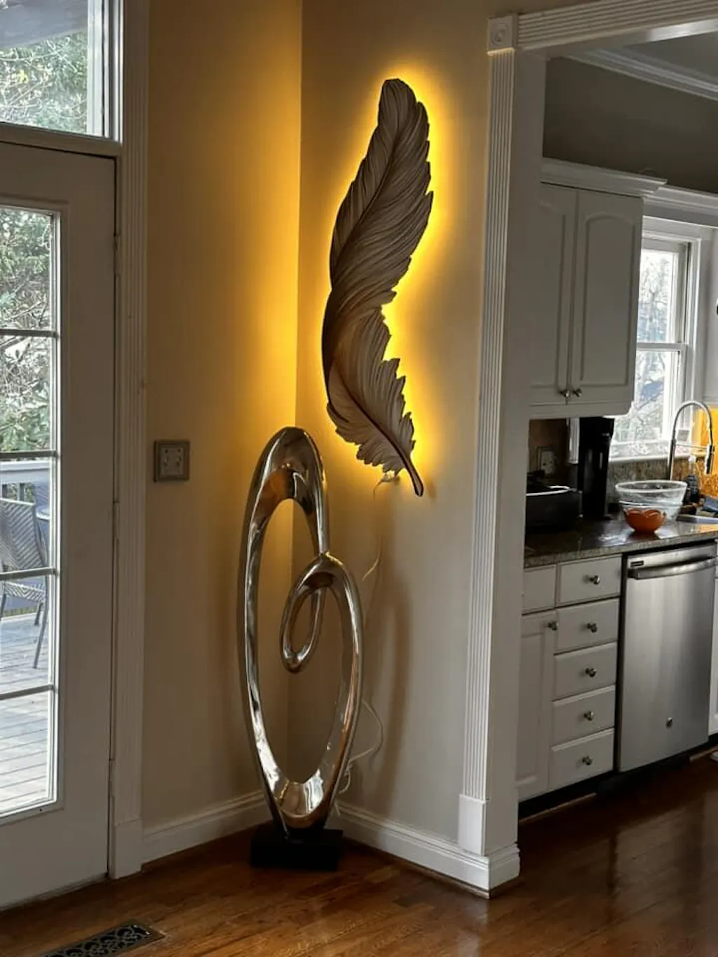 Feather Art Light Effect: This feather wall lamp LED light strips are hidden behind the feather painting, producing soft, non-glaring light that creates a hazy gradient glow.