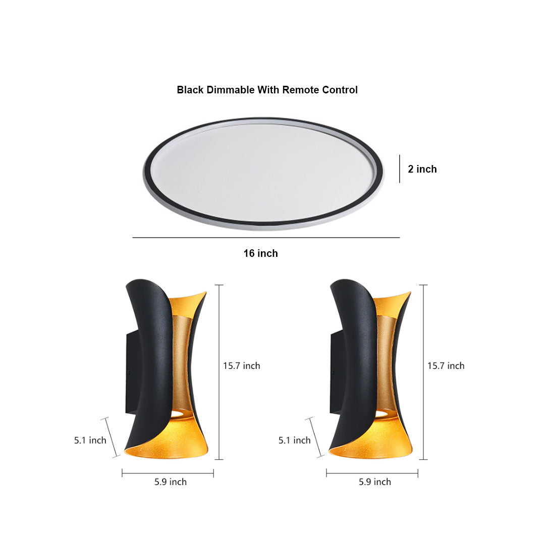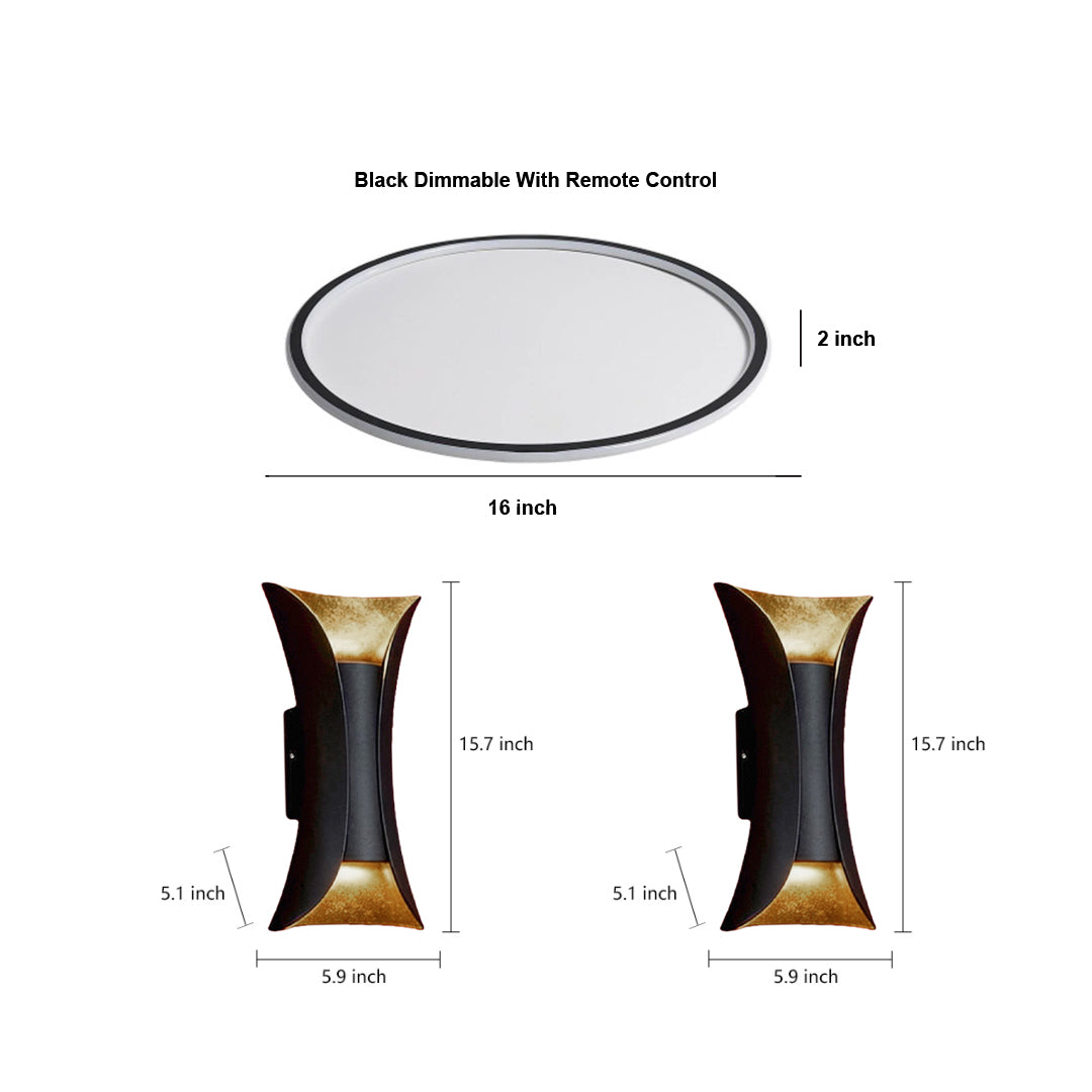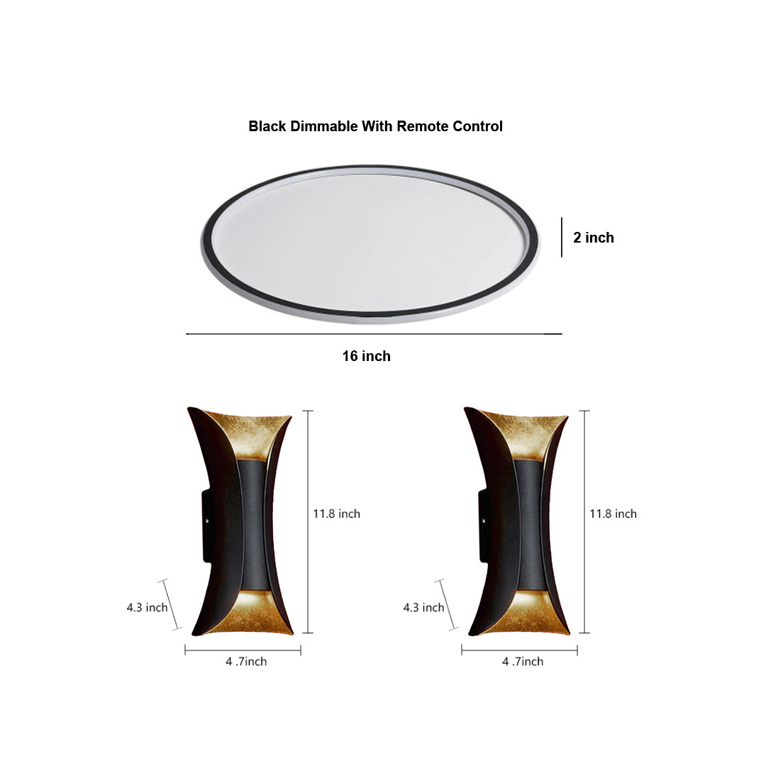 Modern Porch Lighting Set: Black LED Flush Mount & Wall Sconce