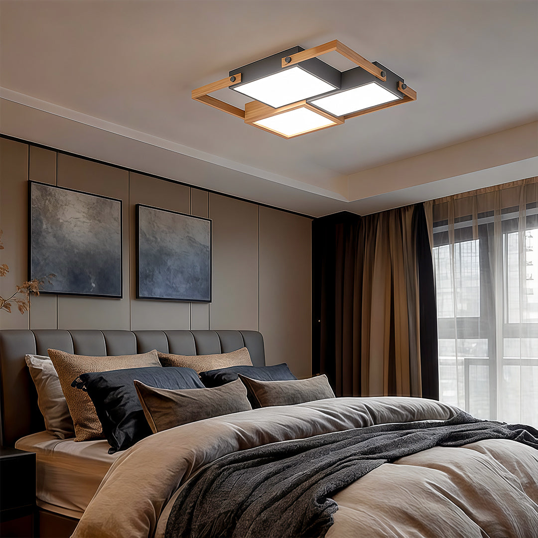 Modern Nordic design: This led square ceiling lights minimalist geometric wooden frame that blends natural warmth with modern style.