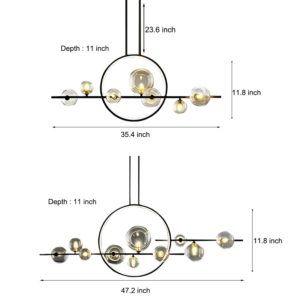 - This Chandelier is composed of some bubbles glass shade a ring and strip body, which is a functional and aesthetically pleasing light fixture, perfect for lighting your kitchen and dining room.