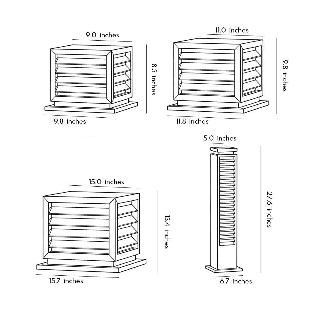Four specifications available: This home pillar light four sizes to fit square, round, and other cross-sections and heights.