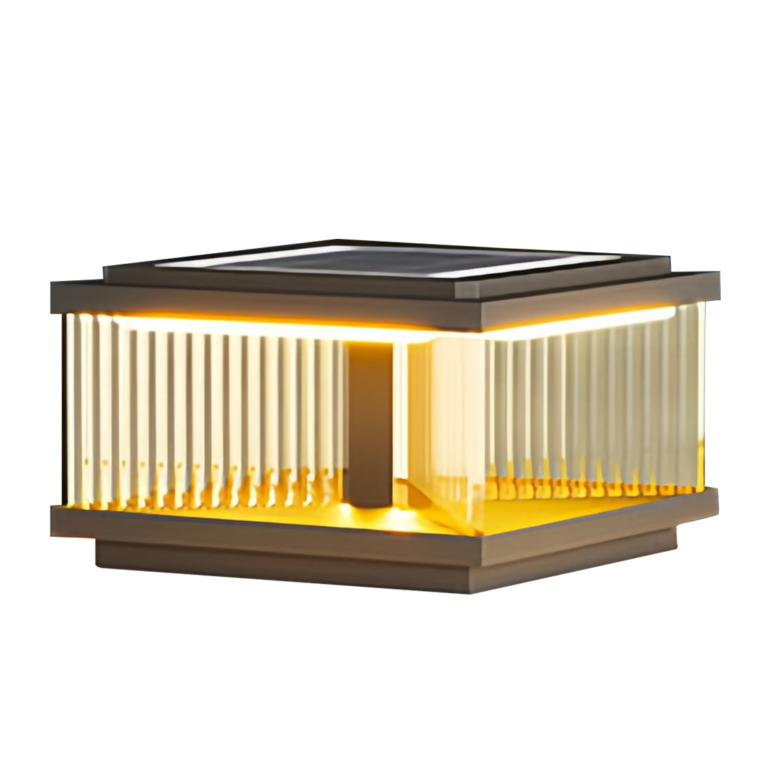 This pillar post lights is available in three specifications and can be chosen with hardwired or solar power options. The lamp body is made of die-cast aluminum with a glass lampshade, featuring warm light LED source and IP55 protection rating. The solar-powered model is equipped with a 4400mAh built-in battery, providing 10-12 hours of continuous use. It offers a solution combining geometric aesthetics with long-lasting illumination for modern outdoor spaces such as courtyards and fence posts.