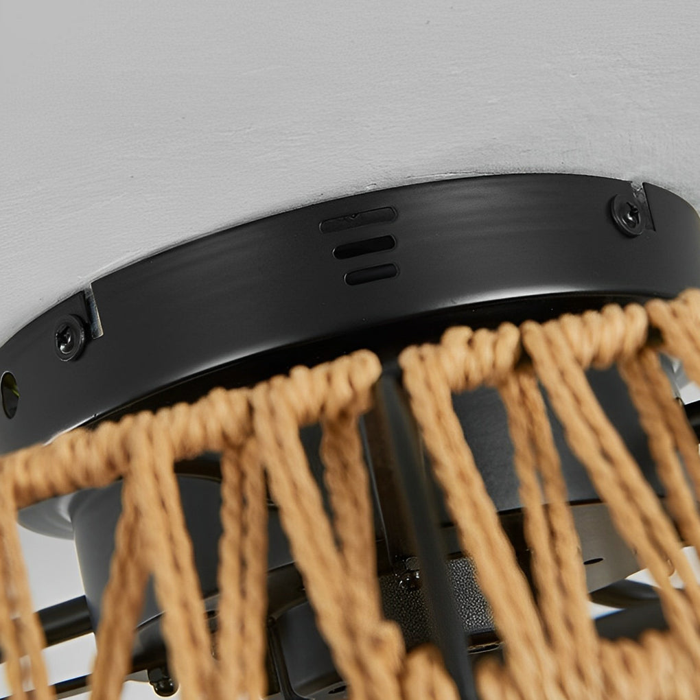 - This ceiling fan lamp with rattan weaving and metal lamp body shows personality and adds classic and retro beauty to your home. And its operation is smooth and noiseless, suitable for the dining room and bedroom.