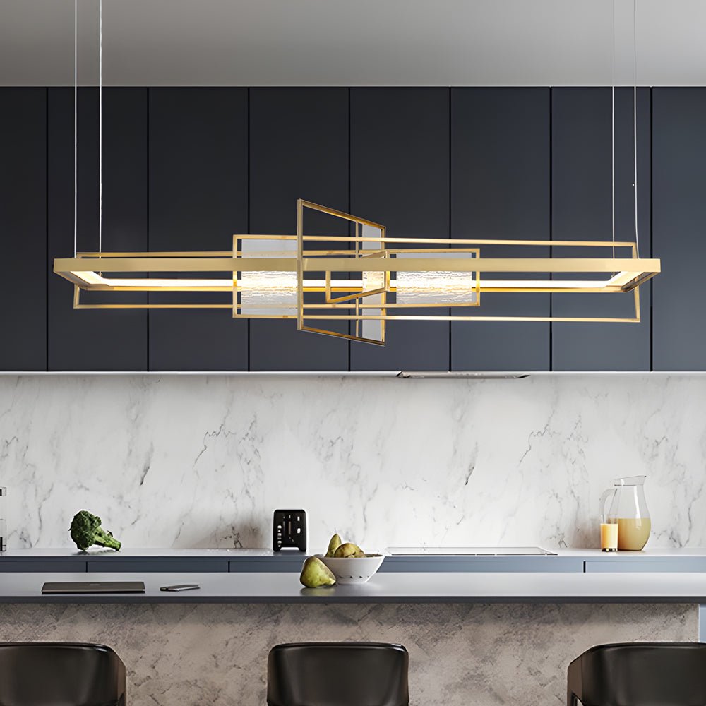 - This chandelier composed of several rectangular iron light frames of different sizes and glass decoration has unique charm and appeal. Its LED light strip is bright and non-glaring, and the warm white light can create a comfortable and warm dining atmosphere for you and your family.
