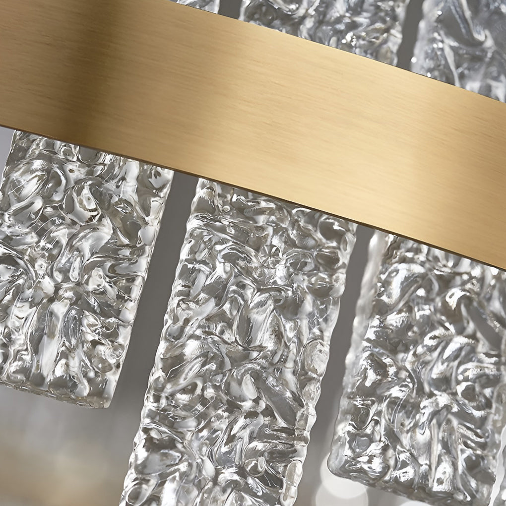 - The sleek and gorgeous look makes this chandelier an eye-catching lighting tool. The water ripple pattern glass lampshade is crystal clear and delicate in texture, so that the light from the chandelier can create a unique light effect in your home.
