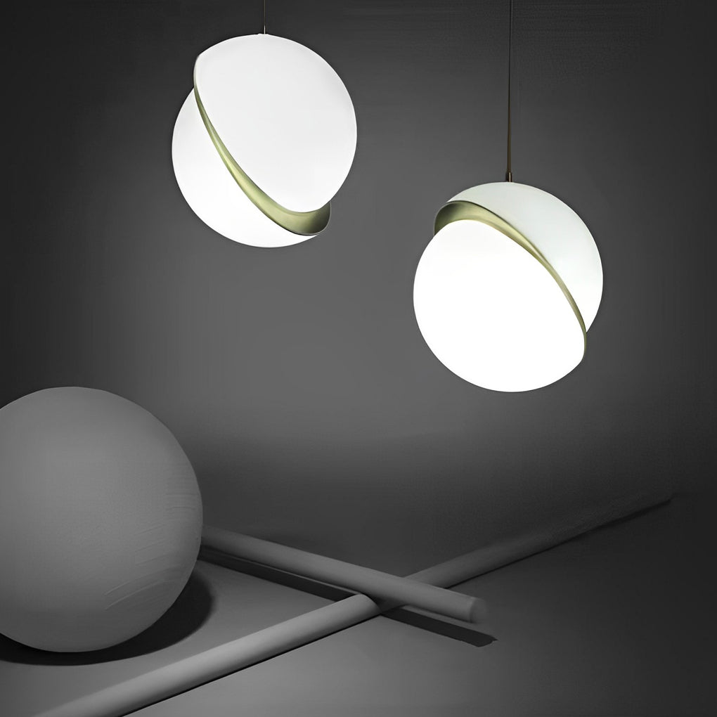 - This iron nordic pendant lights adopts the creative shape design of two semicircles combined, which disperse the light in the irregular round acrylic lampshade, creating a pleasant light and filling your home with an artistic atmosphere.