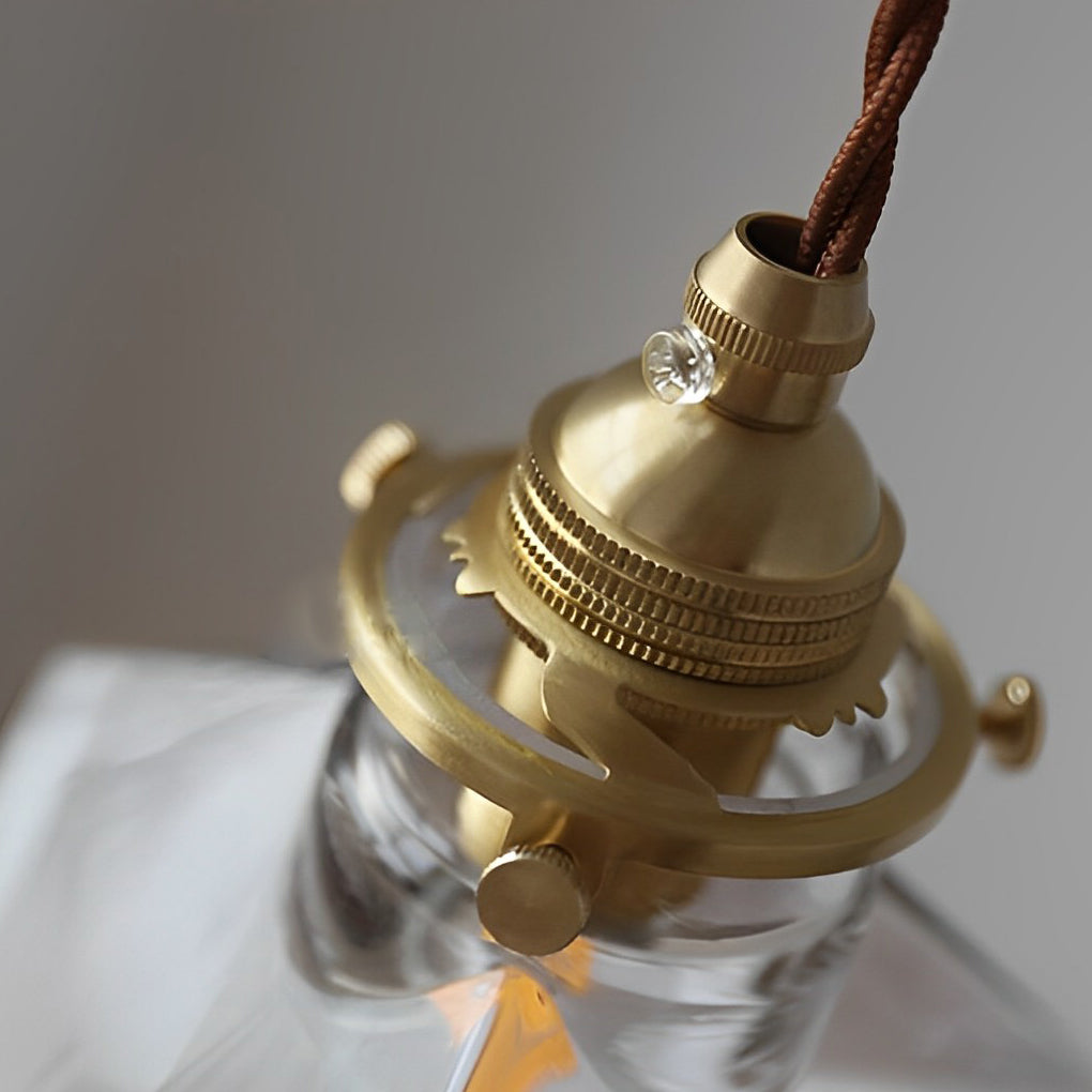 - This mini pendant lamp is made of glass and brass hardware. Its glass lampshade has a simple and unique shape, high light transmittance, not easy to change color or break, and the light is bright and uniform without glare.