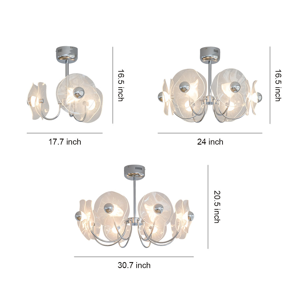 Three Specifications Available: This acrylic LED chandelier 3-head refined/6-head standard/8-head luxurious, suitable for different spatial scales.