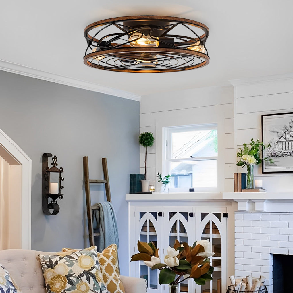 - This is a cage shaped bladeless ceiling fan with a metal cage that makes a great retro home decor, whether your home's style is edgy urban loft or laid-back modern country. As beautiful as it is functional, this fan light is the perfect addition to the bedroom, dining room, living room and kitchen.