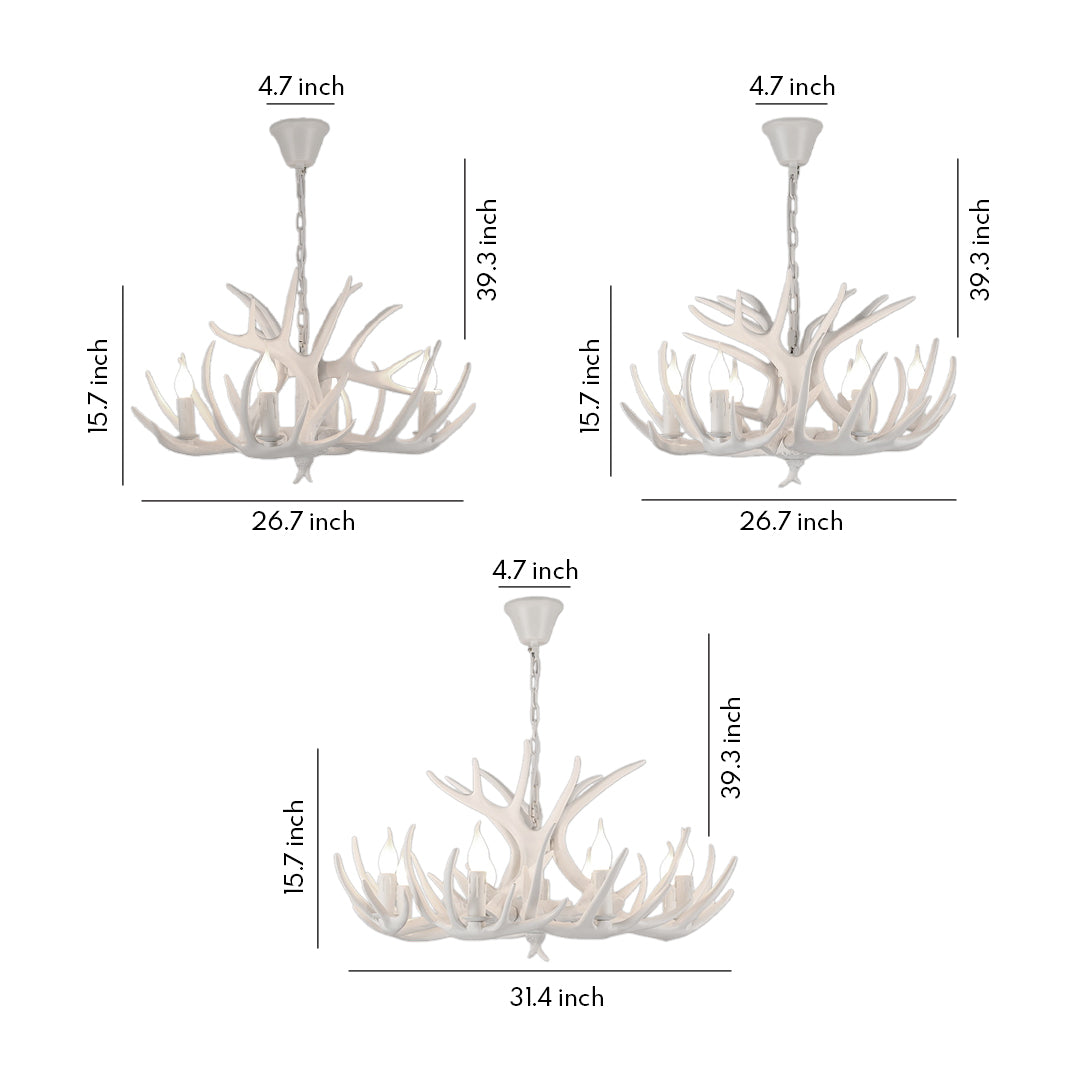 - This antler chandelier is made from high-quality resin, and it showcases a pristine white finish that accentuates its intricate, branching form.