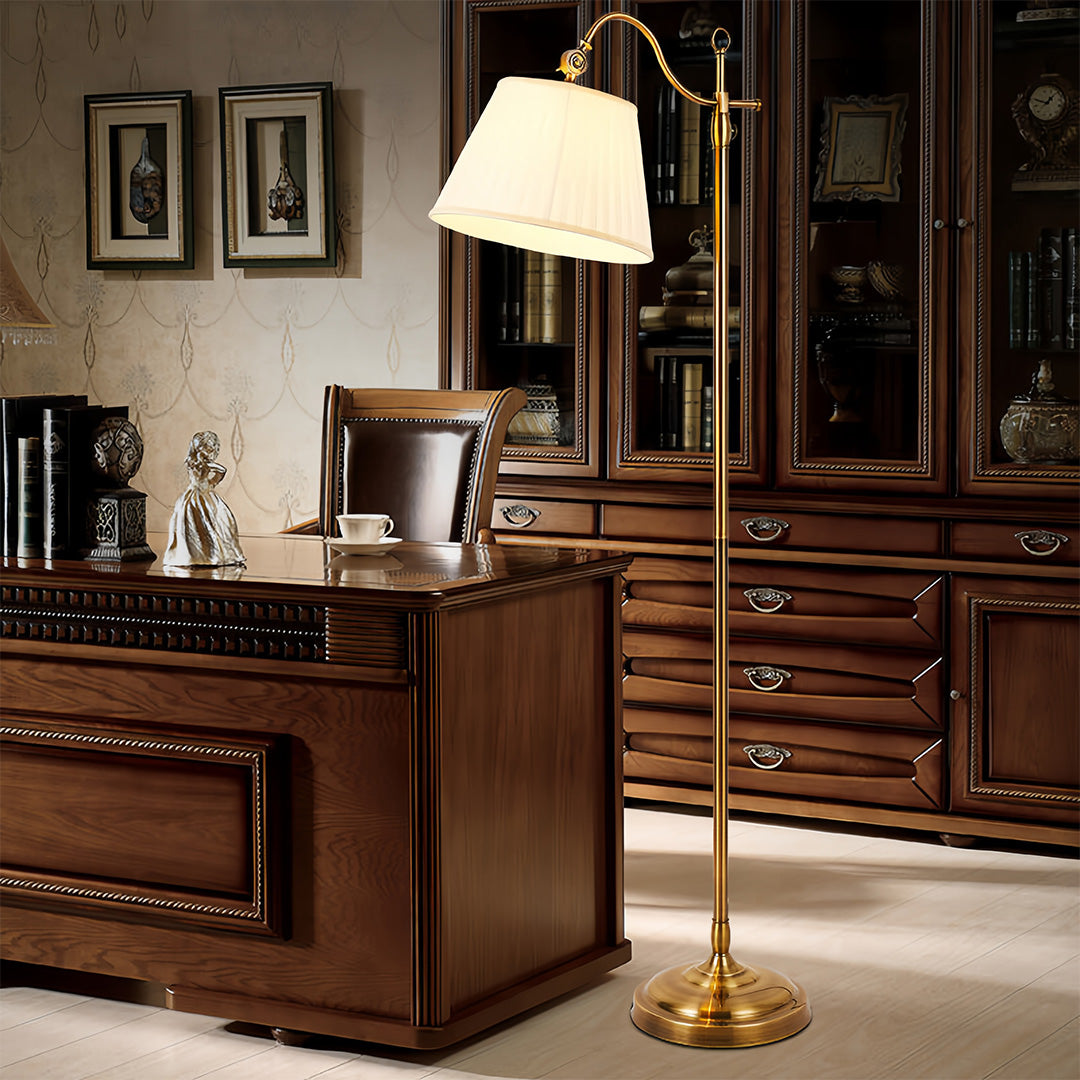 Copper Floor Lamp Adjustable Arch Fabric Shade Light Vintage Style