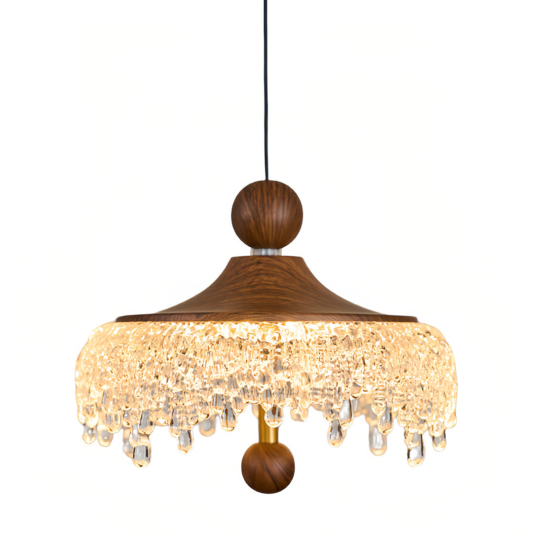 This water drop pendant light features an iron body and an acrylic lampshade, exuding a classic and elegant walnut color. Available in both standard and adjustable versions, it comes with a 15W LED tri-color light source, supporting a 2-meter hanging wire for free height adjustment, providing a warm and romantic lighting solution for your space.