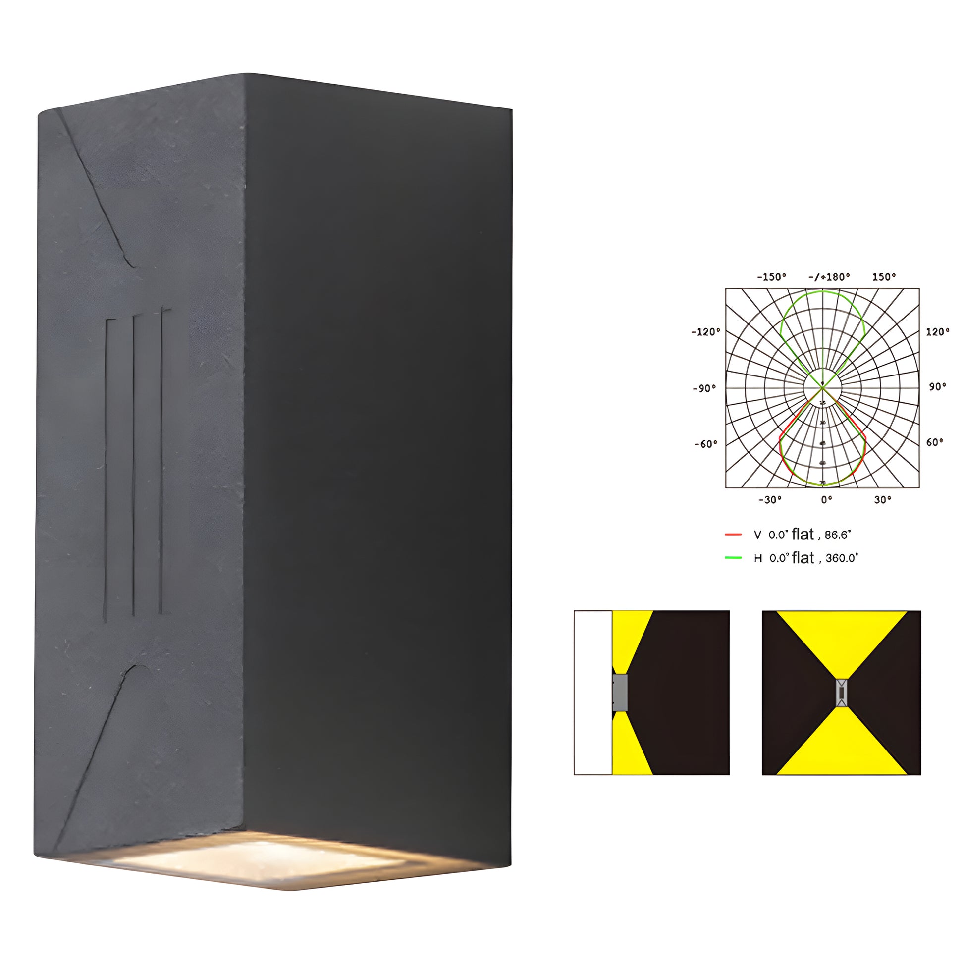 - This is a outdoor wall light with two light effects at the same time. One end is a single COB light source with a built-in reflector, which has a wide illumination angle and high brightness. The other end is an array LED chip with a built-in lens, with a narrow beam and a long irradiation distance. This unique lighting design can perfectly complement the ambience of your patio.