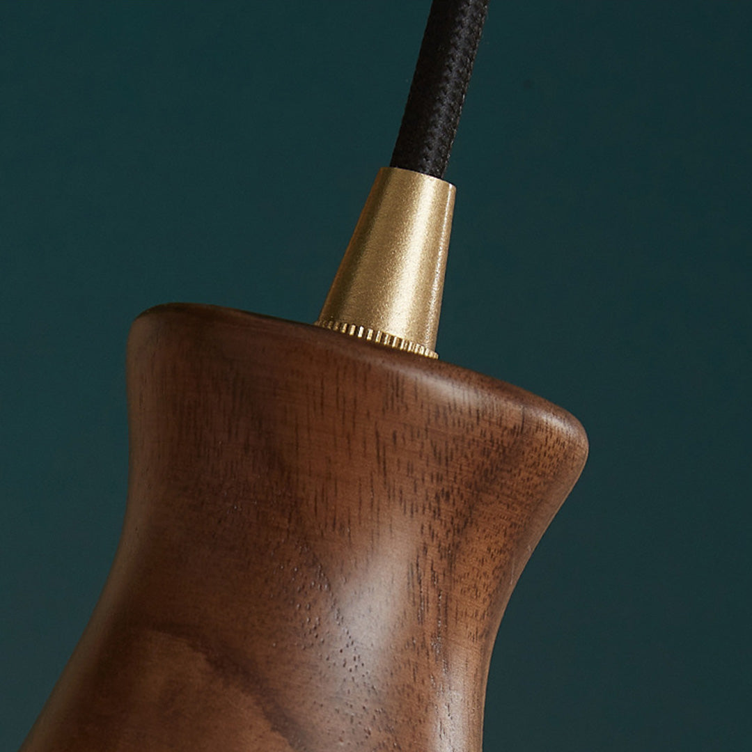 This wood light pendant features an H65 brass body paired with walnut wood accents and high-temperature blown glass shade, available in small, medium, and large sizes. It uses E27 screw base warm light bulbs and comes with a 1.8-meter adjustable suspension cord, providing a natural and rustic lighting solution for cafes, bars, restaurants, and other spaces.